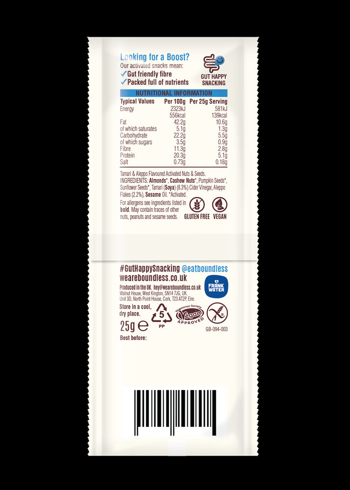 Love boundless nuts will keep buying forever! However, please consider selling via amazon UK as I used to get them on there and shipping and delivery was so much easier and more convenient as a prime member. But will still bulk buy for now :)